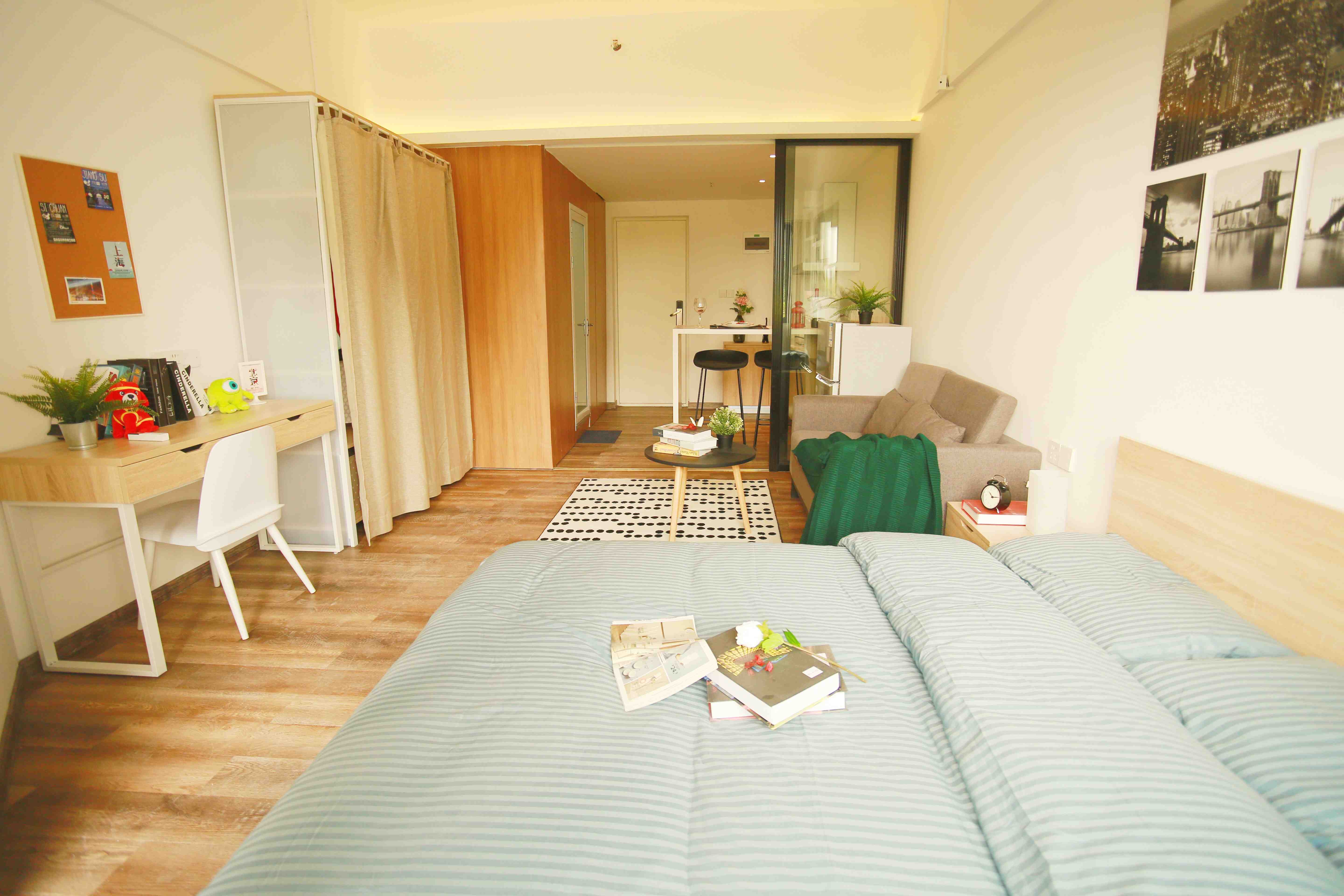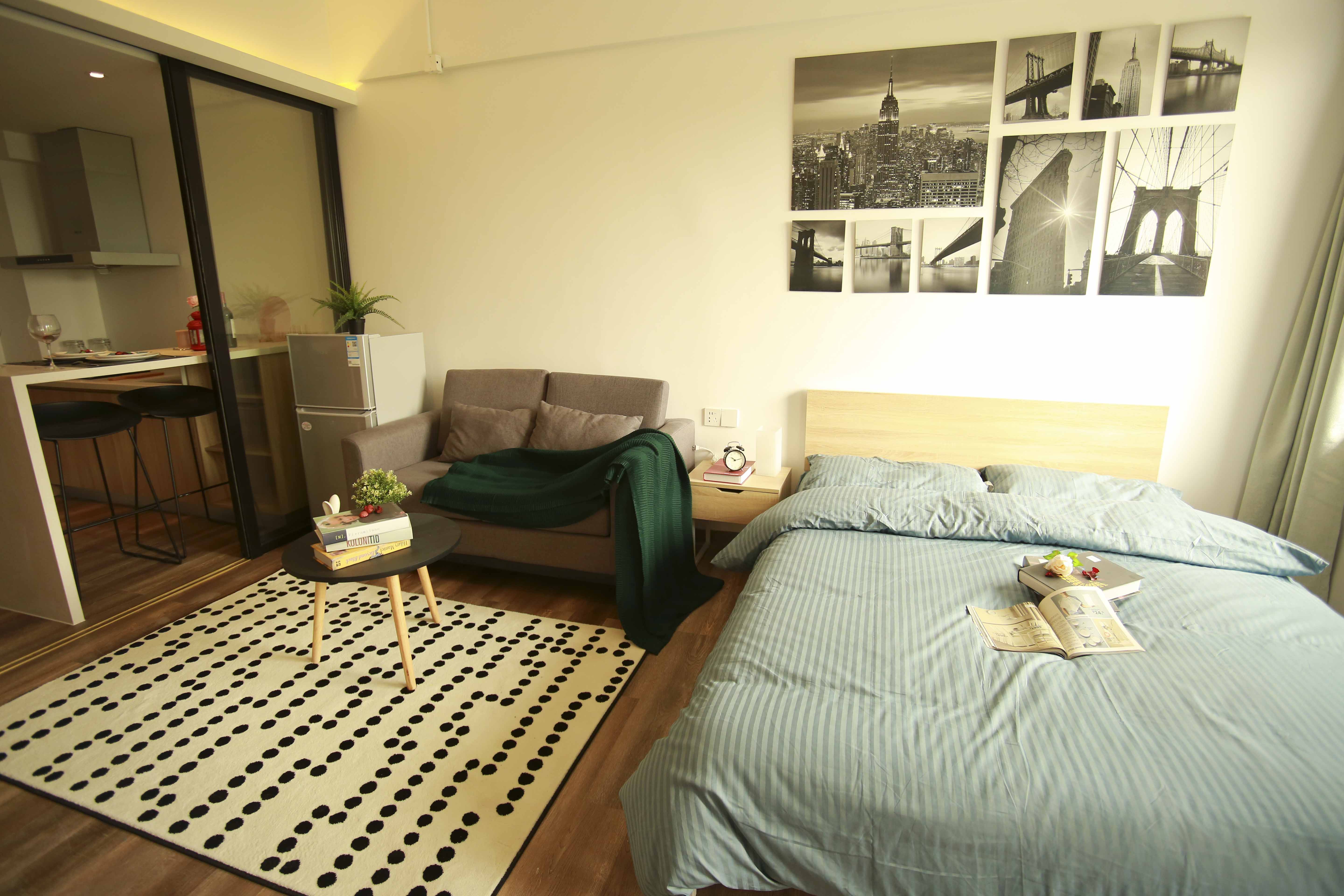房源描述 : 房源处于 荔湾区海龙街龙溪大道287号,该区域适宜居住,空气清新,物业管理完善 附近交通方便,公交线路有 962路; 996路 等 靠近 菊树、菊树 等地铁站 无其他费用,安全放心你说你想要的是生活,不是漂泊 泊寓·城市青年家,给你想要的生活 低层公寓、南北通透、大阳台、落地窗; 3.2米挑高,告别压抑 独立卫浴、独立厨房,净开间3.6米,告别拥挤 泊寓全新设计风格,全新宜家定制家居家私,全新品牌家电,满足生活一切想象! 地铁菊树站400米,芳村体育中心旁,市场环绕;米面粮油,鱼肉果蔬,送货上门 监控环绕,指纹门禁+数字密码锁,专人驻店24h服务,停车不收费! 地址:广州市荔湾区龙溪大道287号 交通: 地铁:广佛线菊树地铁站D出ロ400米,3站南海万达广场、佛山宜家;3站沙园直达乐峰;1站换乘line 1,直通越秀、天河; 公交:962/996/佛275/412/高峰56等三四五六趟公交直达坑口、芳村 驾车:面朝龙溪大道,直通芳村大道,珠江隧道、鹤洞大桥,5min芳村、广钢新城;15min即可到达中山八、沙园、黄沙;20min直达客村、东山口、烈士陵园;30min体育西、珠江新城 房间全新配置: A.1.5*2米大床,标配床垫,拎包入住 B.1.5匹冷暖空调,让您冬夏无忧。 C.方太油烟机/海尔电磁灶/海尔冰箱/美的空调/TCL热水器/TCL滚筒洗衣机 D.北欧风衣柜、床头柜、沙发、茶几、书桌、书椅、鞋柜 E.光纤到户,扫一扫,世界触手可及 F.全南北朝向,独立阳台视野,透风采光佳,晾晒方便 周边:邦华星际广场、增窖市场、荔塱生鲜市场、荔胜广场、南海万达广场、沙园乐峰广场、西城都荟