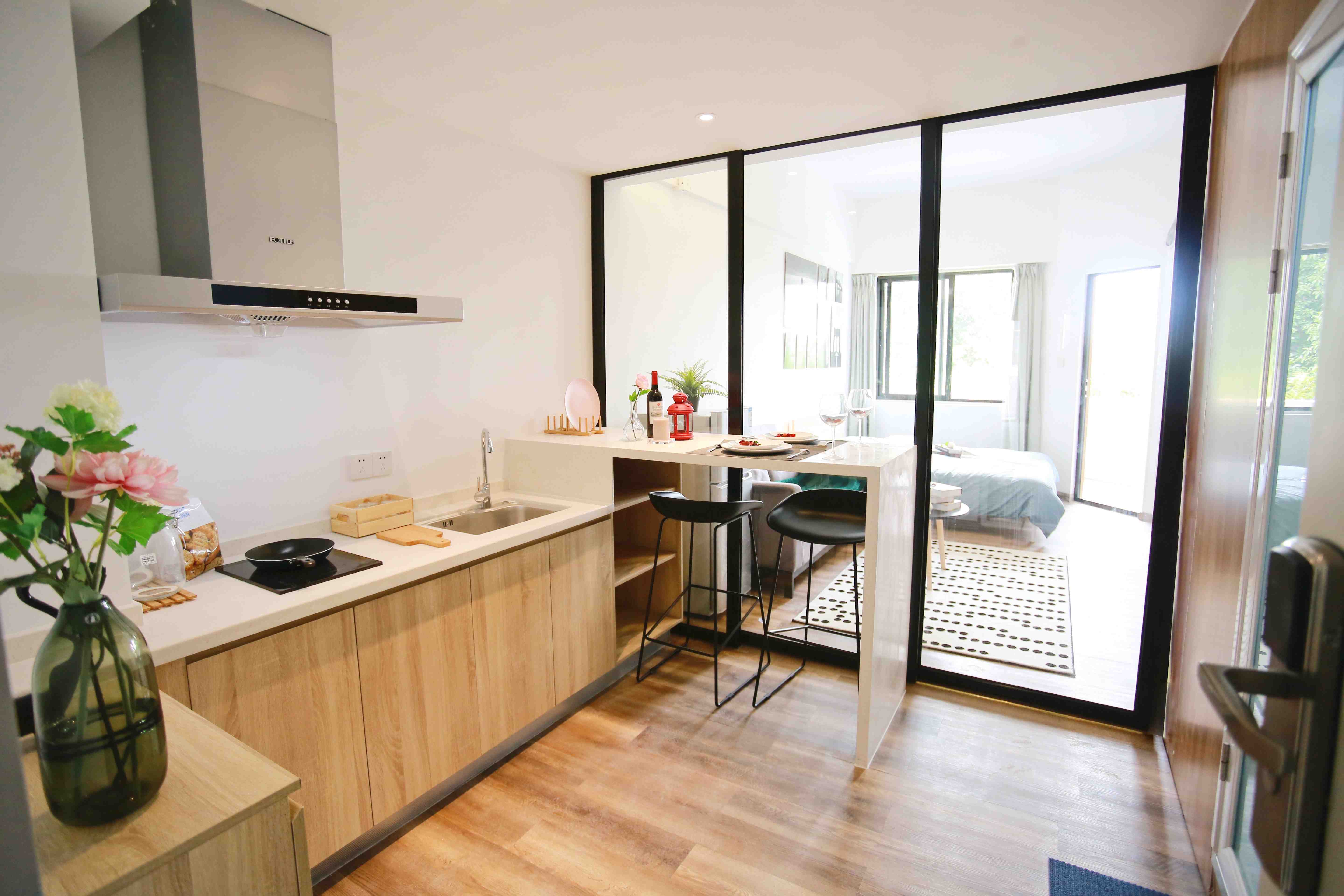 泊寓菊树店独立厨房大阳台落地窗419