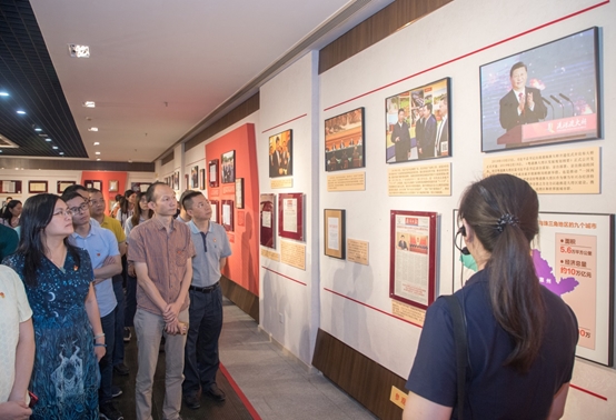 党员干部们在讲解员的指引下依次参观了“探求真理”、“坚守初心”、“勇担使命”、“践行宗旨”、“全面从严治党”等5个主题展区约400件来自中央档案馆、上海市档案馆和广东省档案馆的珍贵档案。展馆以我们党团结带领人民取得革命、建设、改革、发展的辉煌成就为主线,生动展示了我们党为中国人民谋幸福,为中华民族谋复兴的光辉历程。党员干部们一边认真聆听讲解,一边驻足观看珍贵史料。