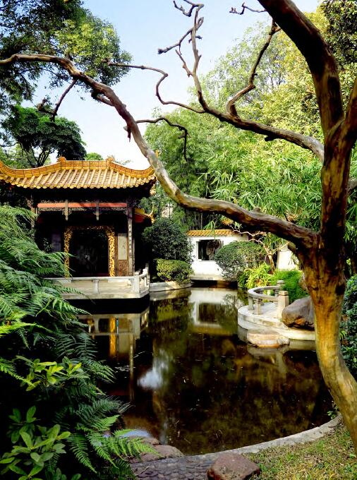 芳华园景区曾代表我国参加1983年慕尼黑国际园艺展的 “中国园”,现广州兰圃存一足尺寸的样板园。郑祖良等先生鉴于艺展场地有限, 在面积为20m×7m,约340平方米左右的小型空间内,着重于以小见大,讲求“清、定、平、远”。为使人感觉园林空间开阔,故采用传统的四面回游的周边式园径,通过欲扬先抑的空间对比手法,加长游客步行流线。大量使用岭南造园手法与景观构件,是延续民族传统基调的现代岭南造园的经典之作。