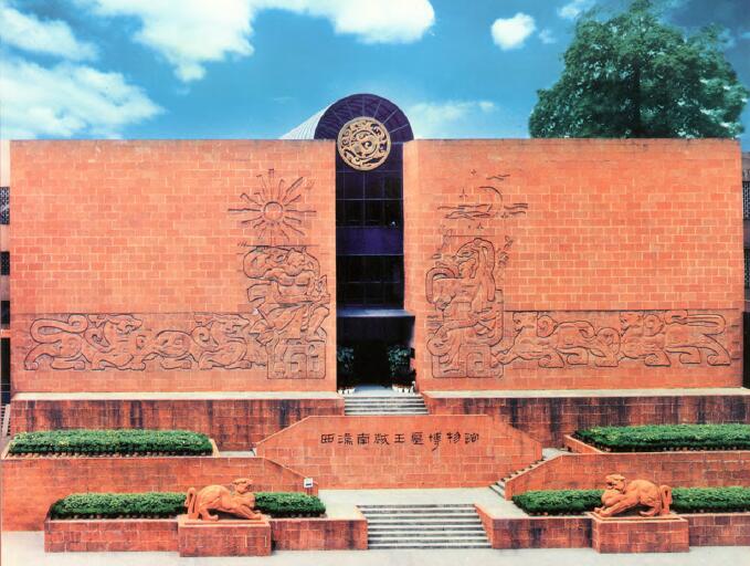 建筑外墙及雕塑均选用广东东莞所产的红砂岩。墙面上所刻的大面积浅浮雕,其造型取材于古墓出土文物上的纹饰图案。陈列馆前的一对红砂岩石狮子是与中国北方狮子不同的南狮形象,这些细部处理使建筑更加具有岭南传统文化的气质。