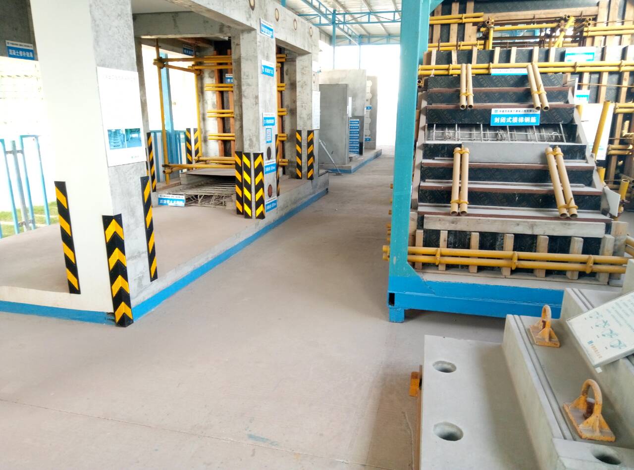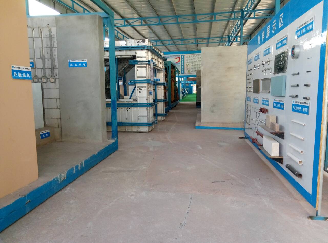 样板集中展示区占地面积168㎡(7m*24m),主要展示内容有:墙柱模板加固、铝合金模板施工工艺、混凝土工程成品保护工艺、楼梯模板加固工艺、涨模打凿及混凝土修复效果、螺杆洞口处理及封堵效果、后浇带止水钢板施工工艺、单边支模施工工艺、后浇带回顶施工工艺、剪力墙绑扎工艺、钢管支撑体系、独立柱模板加固、防水施工工艺、砌体及构造柱施工工艺、内墙抹灰施工工艺、屋面做法施工工艺、屋面防水施工工艺、外墙抹灰施工工艺、预制楼梯、免抹灰高精砖施工工艺、水电安装、卫生间施工工艺、水管井安装工艺、排水管安装工艺及材料展示区。