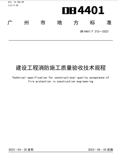 广州市地方标准:《建设工程消防施工质量验收技术规程》(DB 4401/T 212-2023)