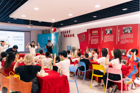 读书会特邀好奇说亲子阅读陪伴计划负责人、法学博士、高级儿童阅读指导老师潇雨授课,活动在孩子们“少年强则国强”的铿锵有力的朗读声中拉开帷幕。活动中,老师带领孩子们共读“共和国脊梁”科学家、“中国原子弹之父”钱三强的故事。通过课件动画、现场问答和游戏互动的形式,老师生动讲述钱三强赴法留学、回国投身核弹事业的人生故事。在手工制作活动环节,家长和孩子们充分发挥想象力,以“小切口”手工理解“大世界”科学。