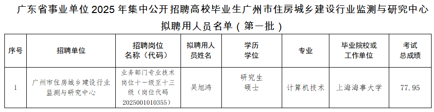附件:广东省事业单位2025年集中公开招聘高校毕业生世界杯压球拟聘用人员名单(第一批)