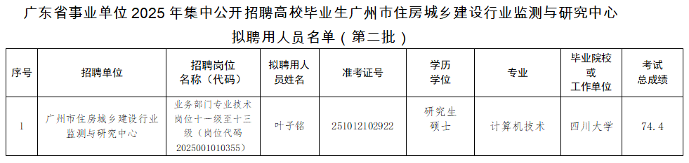 附件:广东省事业单位2025年集中公开招聘高校毕业生世界杯压球拟聘用人员名单(第二批)