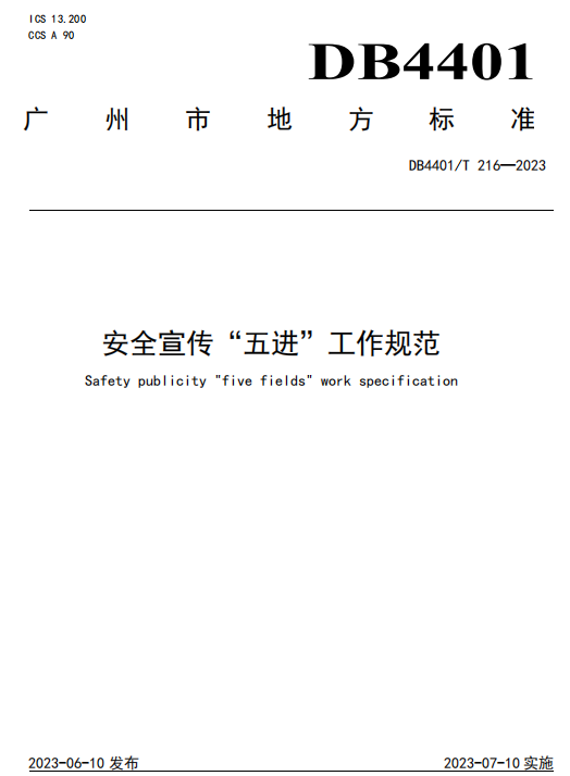 广州市地方标准:安全宣传“五进”工作规范(DB4401/T 216—2023)