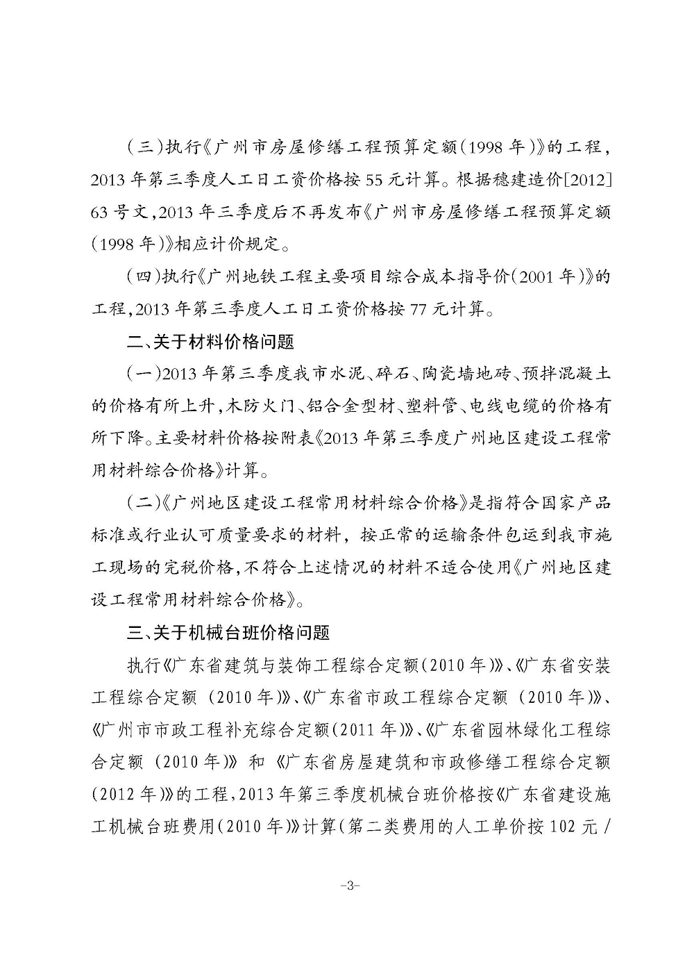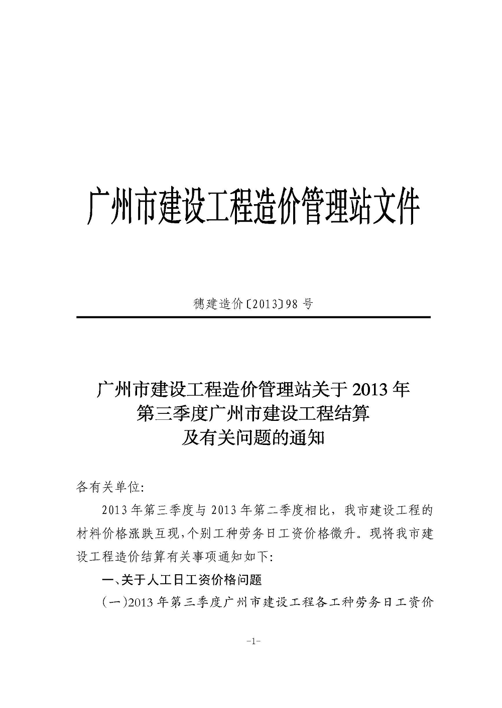 【结算文】关于2013年第三季度广州市建设工程结算及有关问题的通知