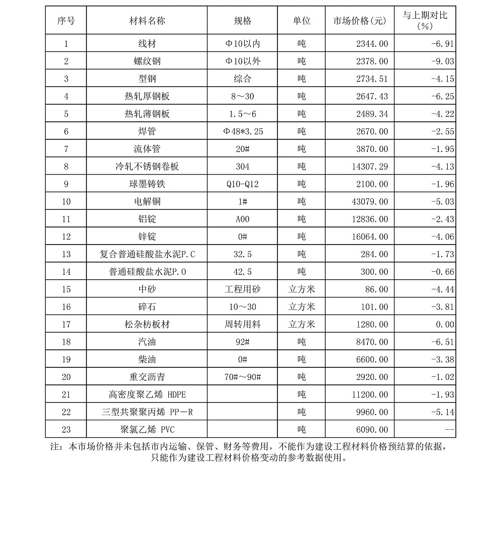 【主材价格】2015年6月份广州市主要原材料市场价格