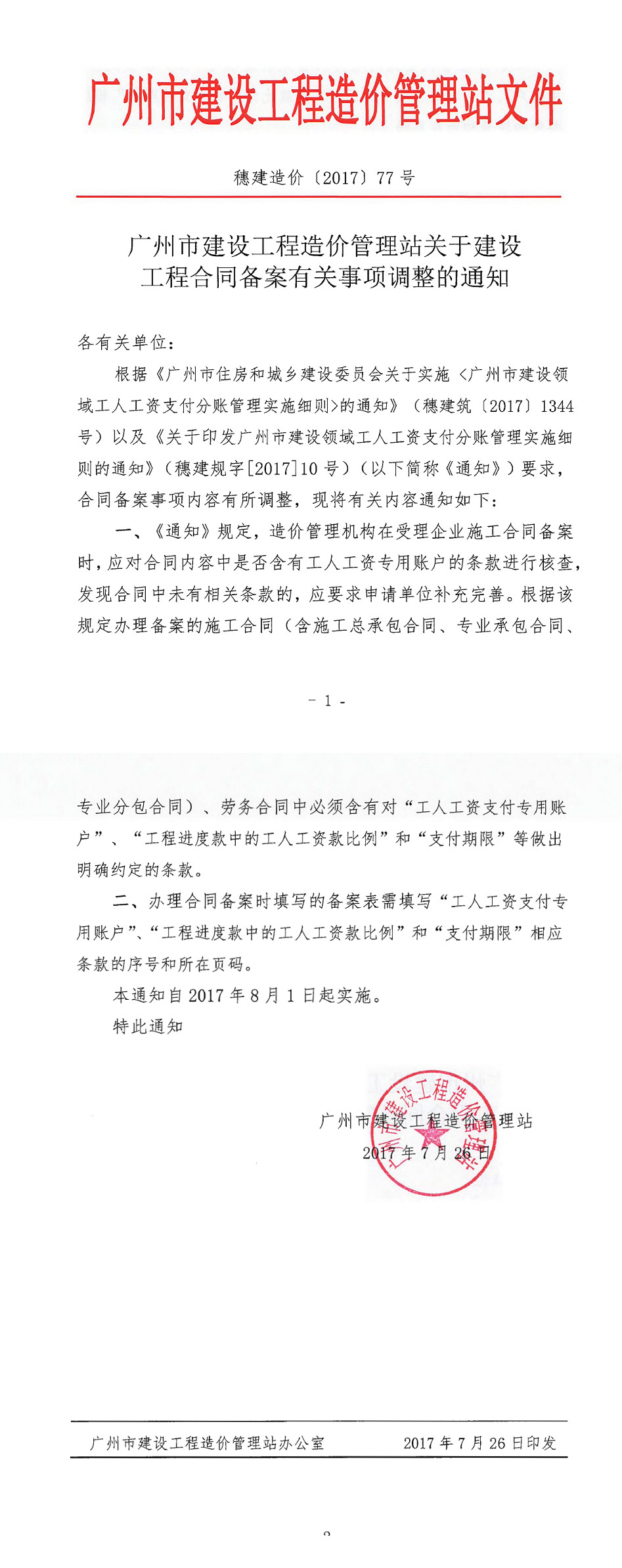 广州市建设工程造价管理站关于建设工程合同备案有关事项调整的通知